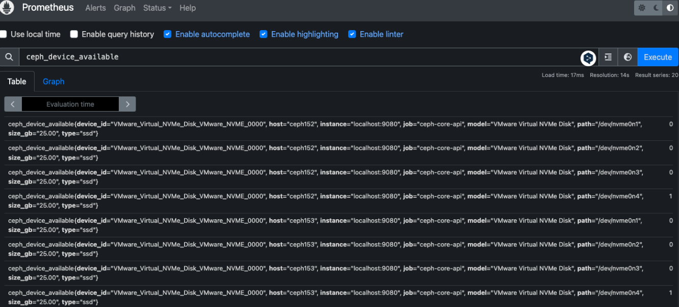 : 템플릿을 작성하기 전에, 현재 Cephadm에서 Prometheus가 수집 중인 모듈(job)확인 필수!