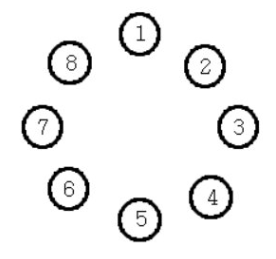 예를 들어 총 8명의 왕자가 있고, 3을 외친 왕자가 제외된다고 하자. 처음에는 3번 왕자가 3을 외쳐 제외된다.